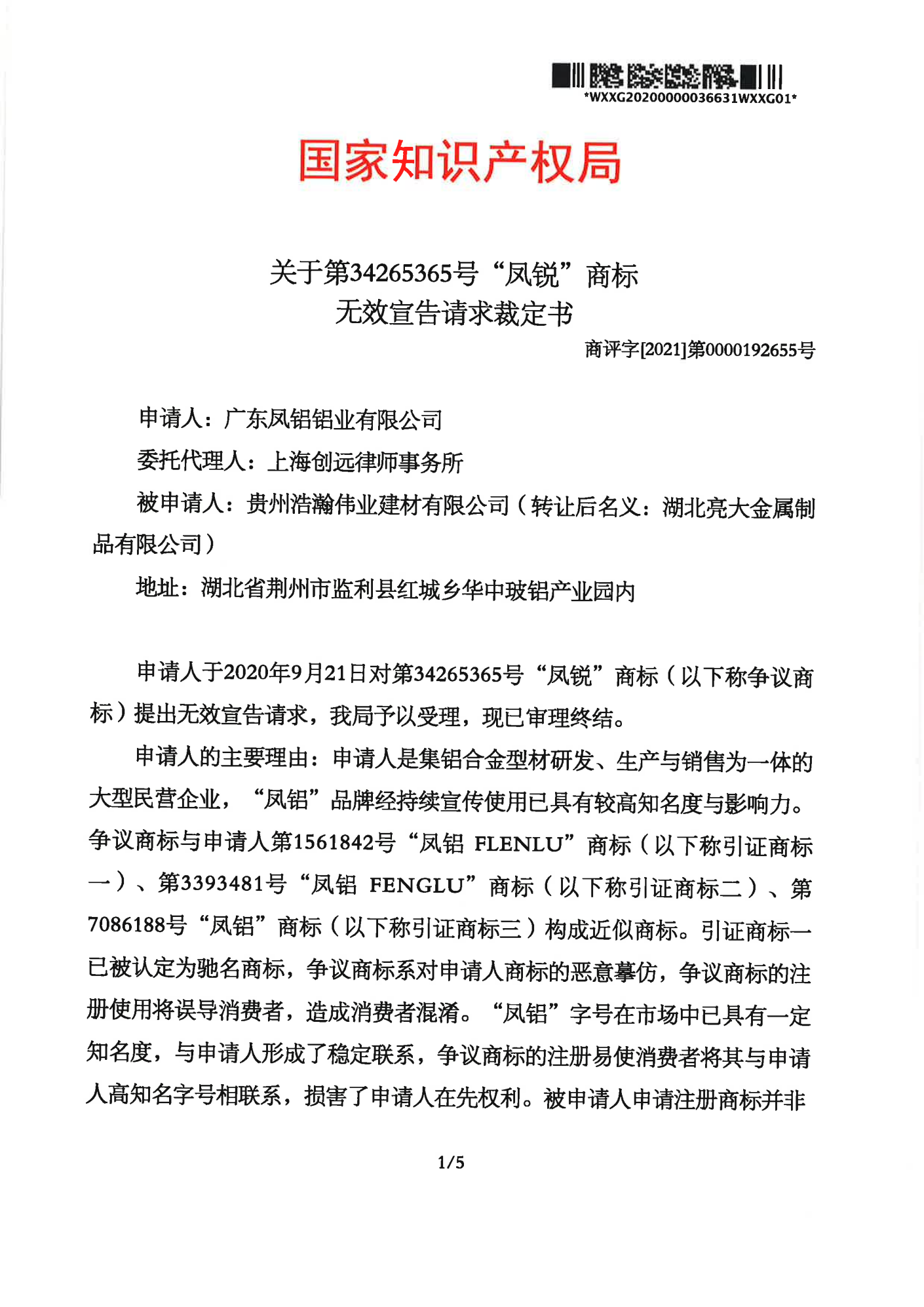 吉林辉知队 | 国家知识产权局:“凤锐”商标无效