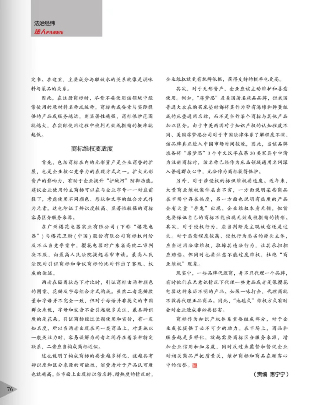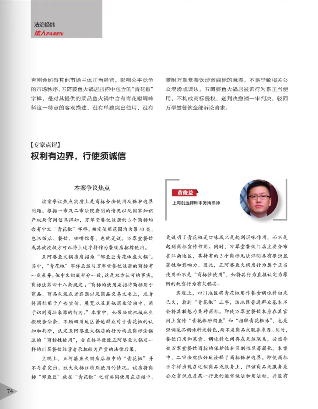 吉林辉知简讯 | 辉知队黄俊益律师应“法治日报”旗下杂志邀请,就“青花椒”案发表专家点评